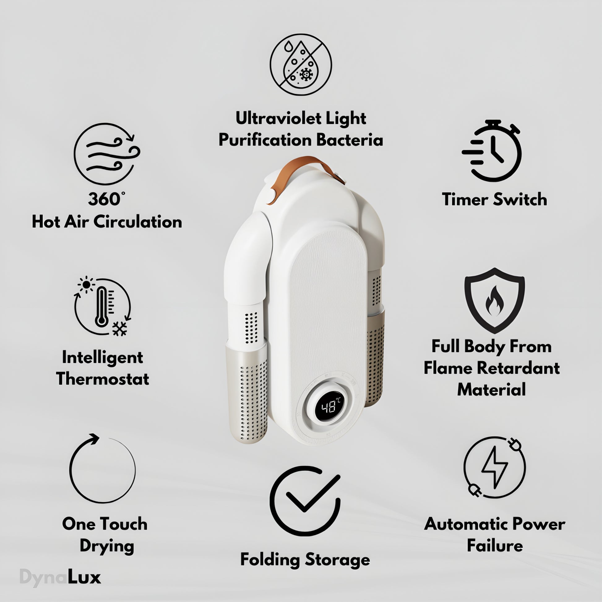 Perfect for sneakers, leather boots, ski boots, gloves, and sports equipment, the Dynalux Dryer is a versatile must-have for every household. It keeps shoes warm, eliminates odor-causing bacteria, and extends the lifespan of your favorite footwear. If you want a powerful, quiet, and reliable shoe dryer, Dynalux is the best choice.